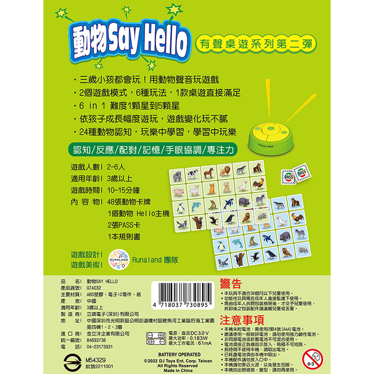 RUNALAND有聲桌遊系列第二彈【動物Say Hello】